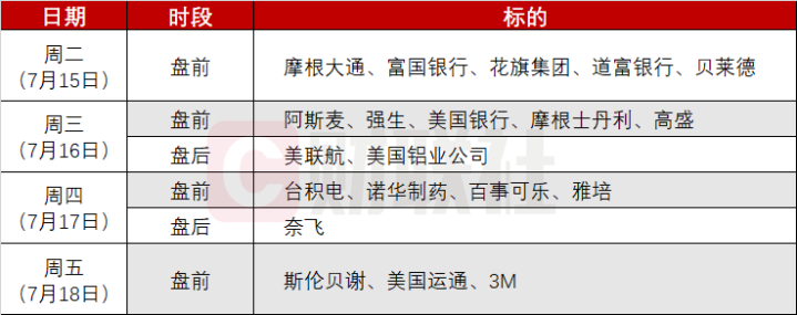 下周,美股Q2财报季拉开序幕,小摩、花旗、富国银行、贝莱德等将于周二盘前率先放榜。周三、周四时还有阿斯麦和台积电的业绩。值得一提的是,台积电4月公布一季报时,其乐观指引带动芯片股开始反弹。