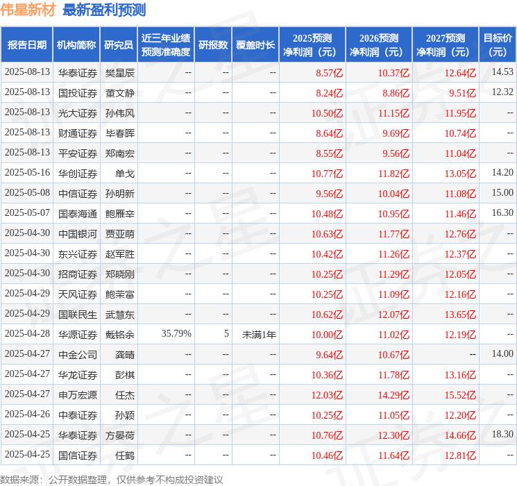 证券之星数据中心根据近三年发布的研报数据计算,华源证券戴铭余研究员团队对该股研究较为深入,近三年预测准确度均值为35.79%,其预测2025年度归属净利润为盈利10亿,根据现价换算的预测PE为17.14。